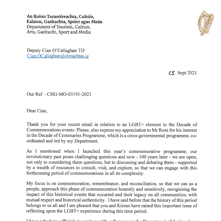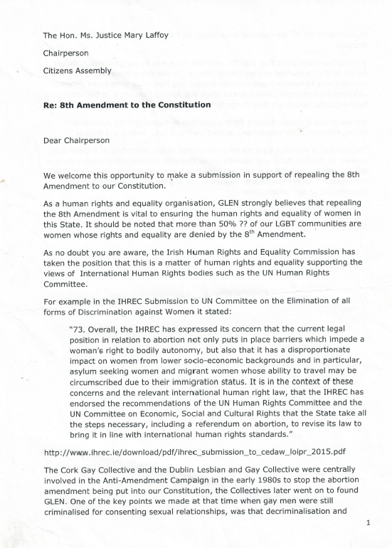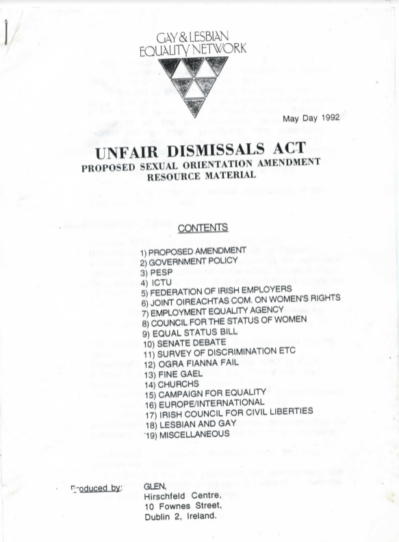 This memo was of great benefit to GLEN and campaign for LGBT+ equality in Ireland.